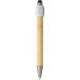 Bambusz golyóstoll újrahasznosított ABS pörgettyűvel és fekete érintővel a nyombógombon. A tollhegy vastagsága 1.0 mm, íráshossz: kb. 800 méter. Az újrahasznosított anyagra utaló logó a tollra van gravírozva.