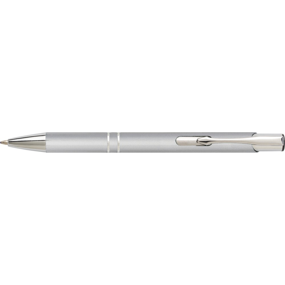 Golyóstoll UV bevonattal, ezüst színű kiegészítőkkel, kék tollbetéttel. Alumínium.