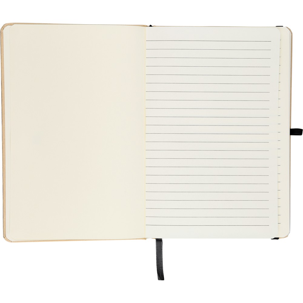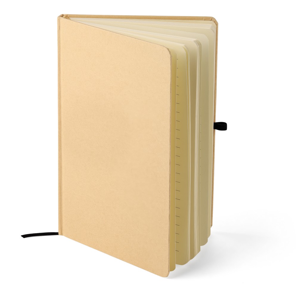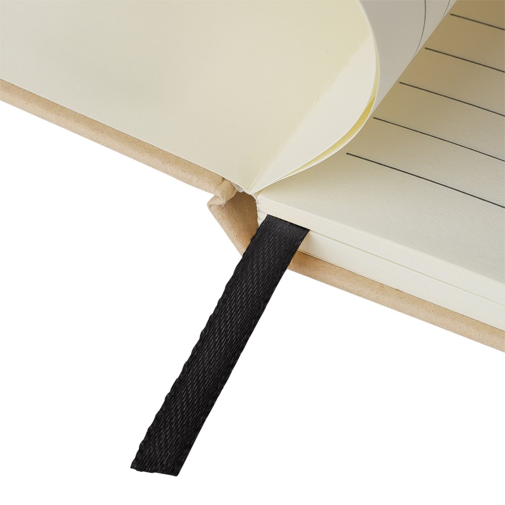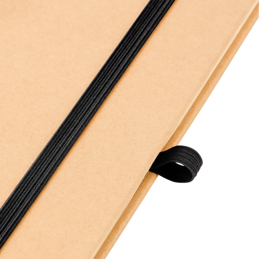 A5-ös jegyzetfüzet kemény nátronpapír (kraft) borítással és alumínium fólia hordozóréteggel, amelyet lézergravírozáshoz terveztek: a gravírozás után látványos tükörhatás válik láthatóvá. 80 vonalas, 70 g/m2 súlyú lapot tartalmaz a sima írásélmény érdekében. A füzetben használt papír FSCŽ Mix tanúsítvánnyal rendelkezik. Színben passzoló részletekkel, például gumírozott rögzítőpánttal, könyvjelző szalaggal és tolltartó hurokkal rendelkezik.