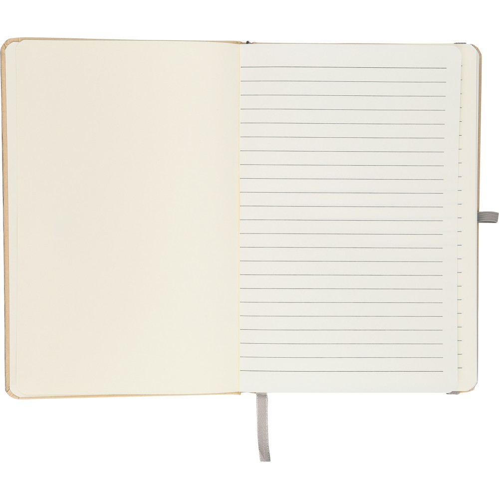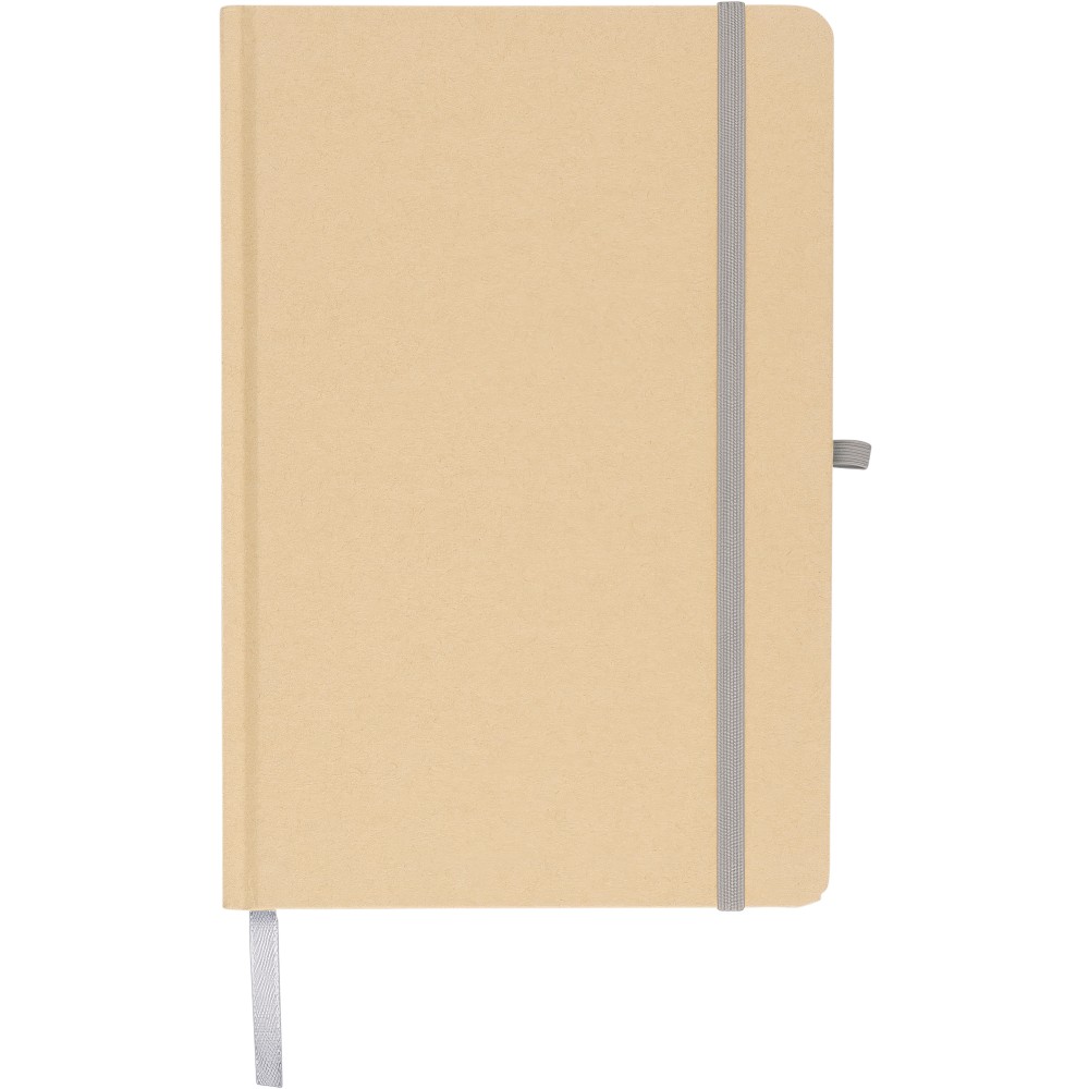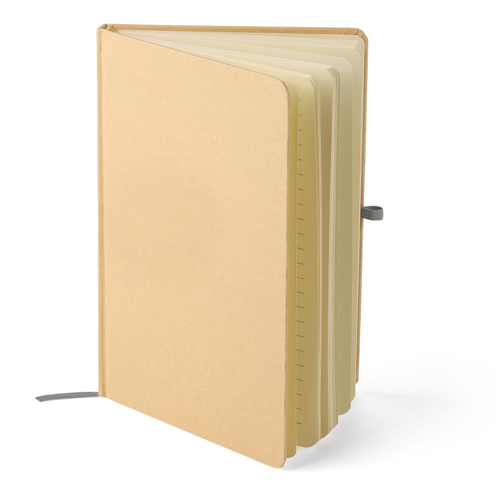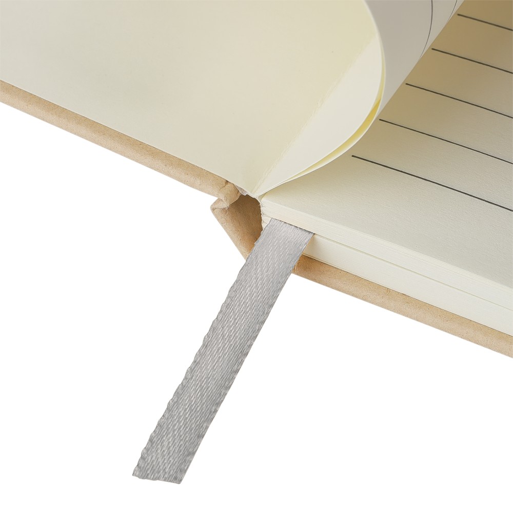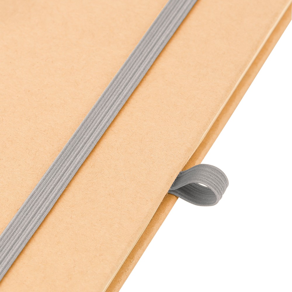 A5-ös jegyzetfüzet kemény nátronpapír (kraft) borítással és alumínium fólia hordozóréteggel, amelyet lézergravírozáshoz terveztek: a gravírozás után látványos tükörhatás válik láthatóvá. 80 vonalas, 70 g/m2 súlyú lapot tartalmaz a sima írásélmény érdekében. A füzetben használt papír FSCŽ Mix tanúsítvánnyal rendelkezik. Színben passzoló részletekkel, például gumírozott rögzítőpánttal, könyvjelző szalaggal és tolltartó hurokkal rendelkezik.