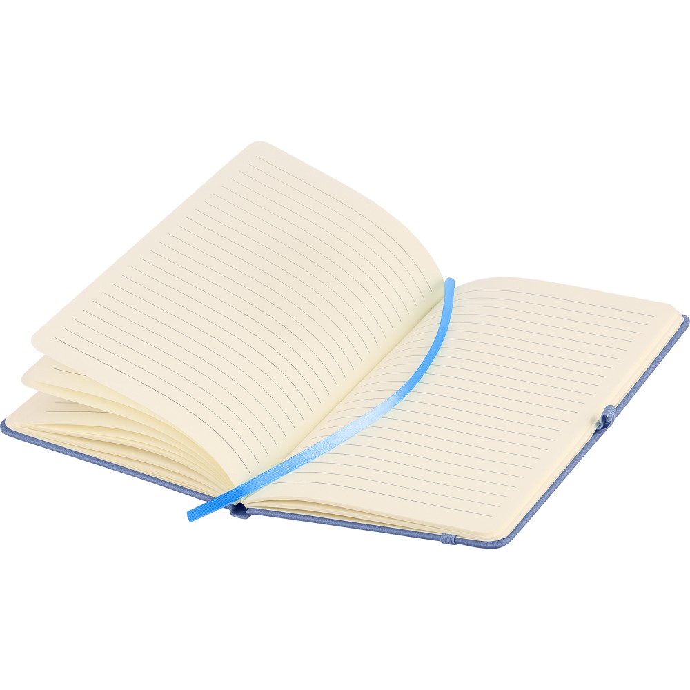 A5-ös jegyzetfüzet újrahasznosított kemény PU borítóval, a hátoldalán dombornyomott újrahasznosított logóval. Tartós és rugalmas anyagból készült, amely kényelmes fogást, párnázottságot és hosszan tartó használatot biztosít. A borító lézergravírozásra alkalmas, amely során finom, tone-on-tone (színazonos) hatás érhető el. 80 vonalas, 70 g/m2 súlyú lapot tartalmaz, színben illeszkedő gumírozott rögzítőpánttal, könyvjelző szalaggal és tolltartó hurokkal. A füzetben használt papír FSC Mix tanúsítvánnyal rendelkezik.