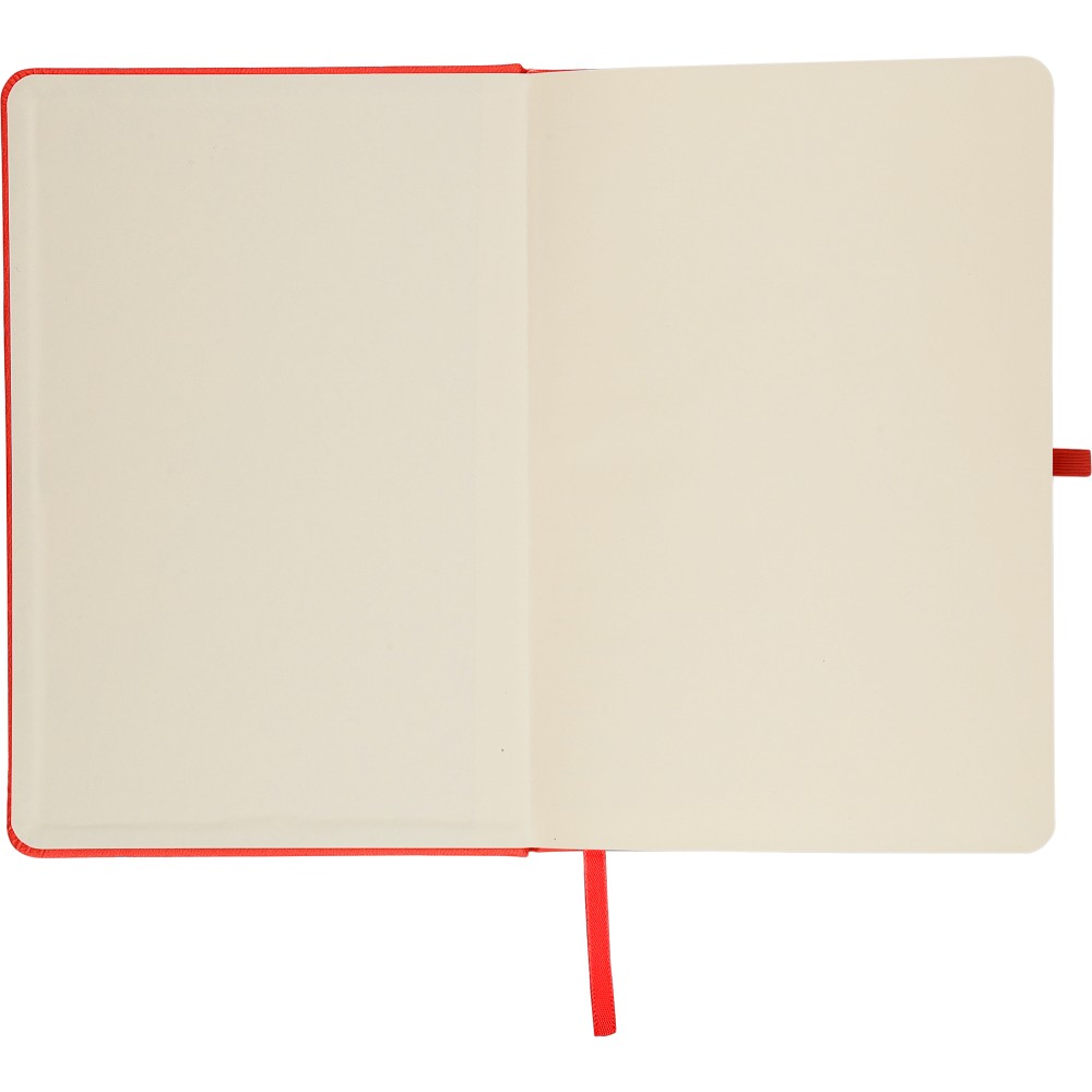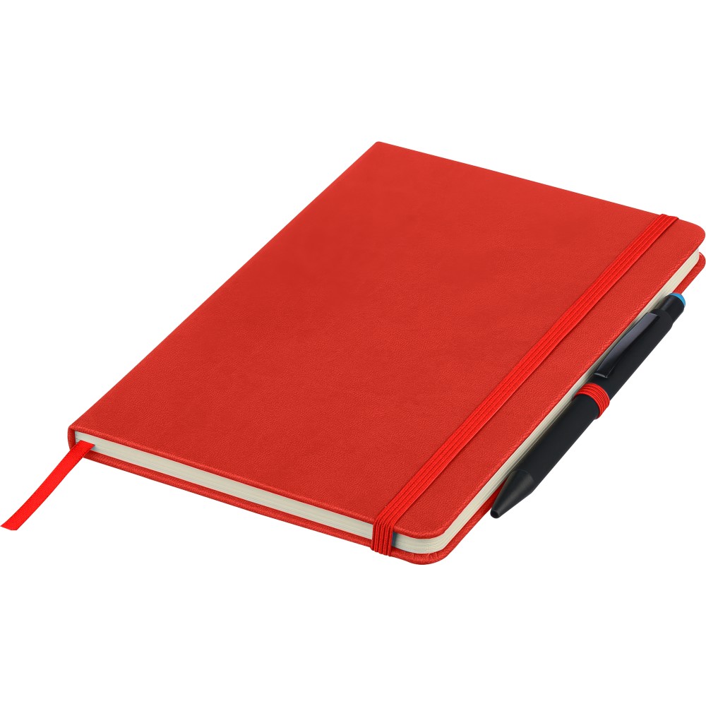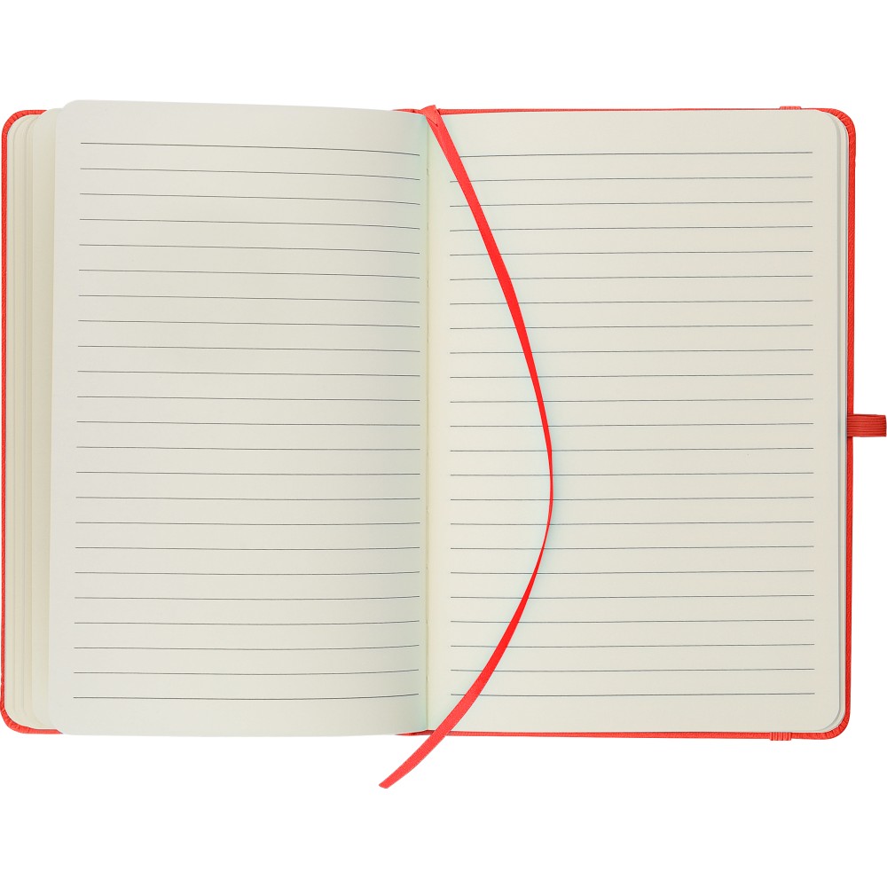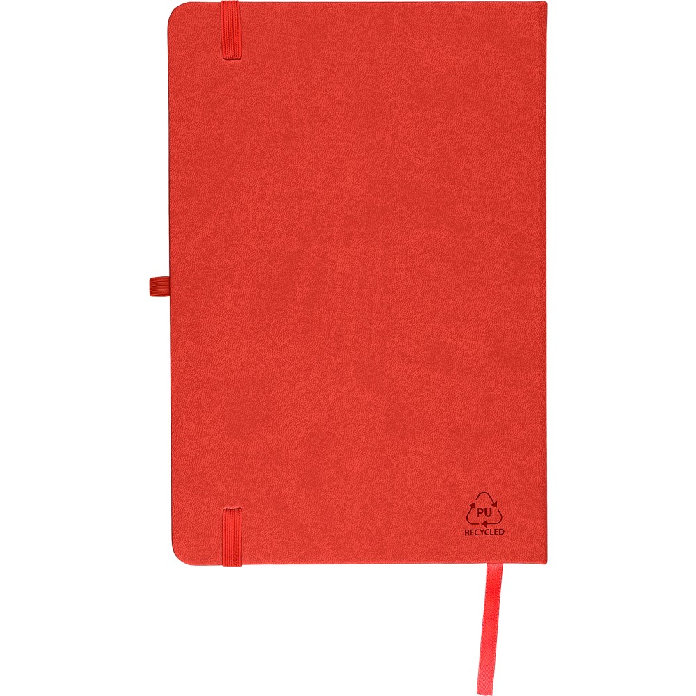A5-ös jegyzetfüzet újrahasznosított kemény PU borítóval, a hátoldalán dombornyomott újrahasznosított logóval. Tartós és rugalmas anyagból készült, amely kényelmes fogást, párnázottságot és hosszan tartó használatot biztosít. A borító lézergravírozásra alkalmas, amely során finom, tone-on-tone (színazonos) hatás érhető el. 80 vonalas, 70 g/m2 súlyú lapot tartalmaz, színben illeszkedő gumírozott rögzítőpánttal, könyvjelző szalaggal és tolltartó hurokkal. A füzetben használt papír FSC Mix tanúsítvánnyal rendelkezik.