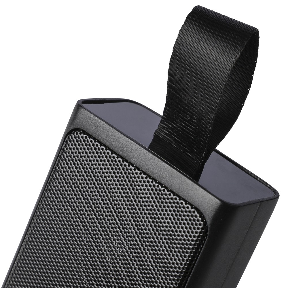 Újrahasznosított ABS-ből készült 5W teljesítményű hangszóró COB LED zseblámpával, szilikon hurokkal és 5.4-es vezeték nélküli technológiával. 500 mAh kapacitású akkumulátorral rendelkezik, 5V/500 mA bemenettel. Kültéri kialakítású, a terméktesten recycled (újrahasznosított) alapanyagra utaló logó található. Barna dobozba csomagolva.