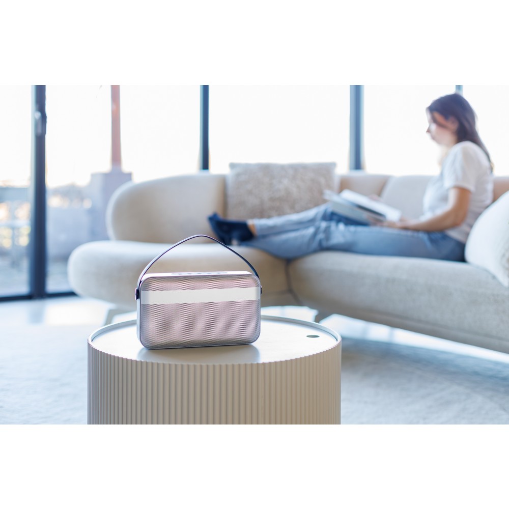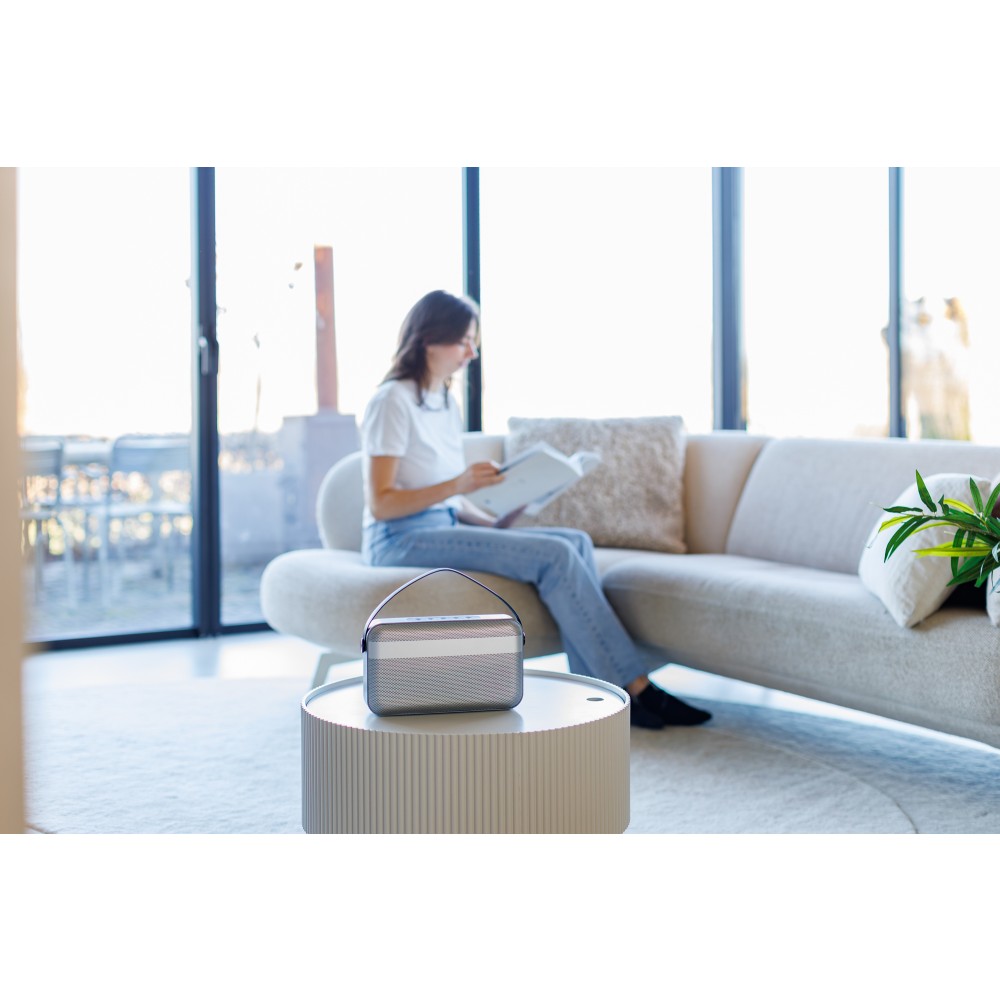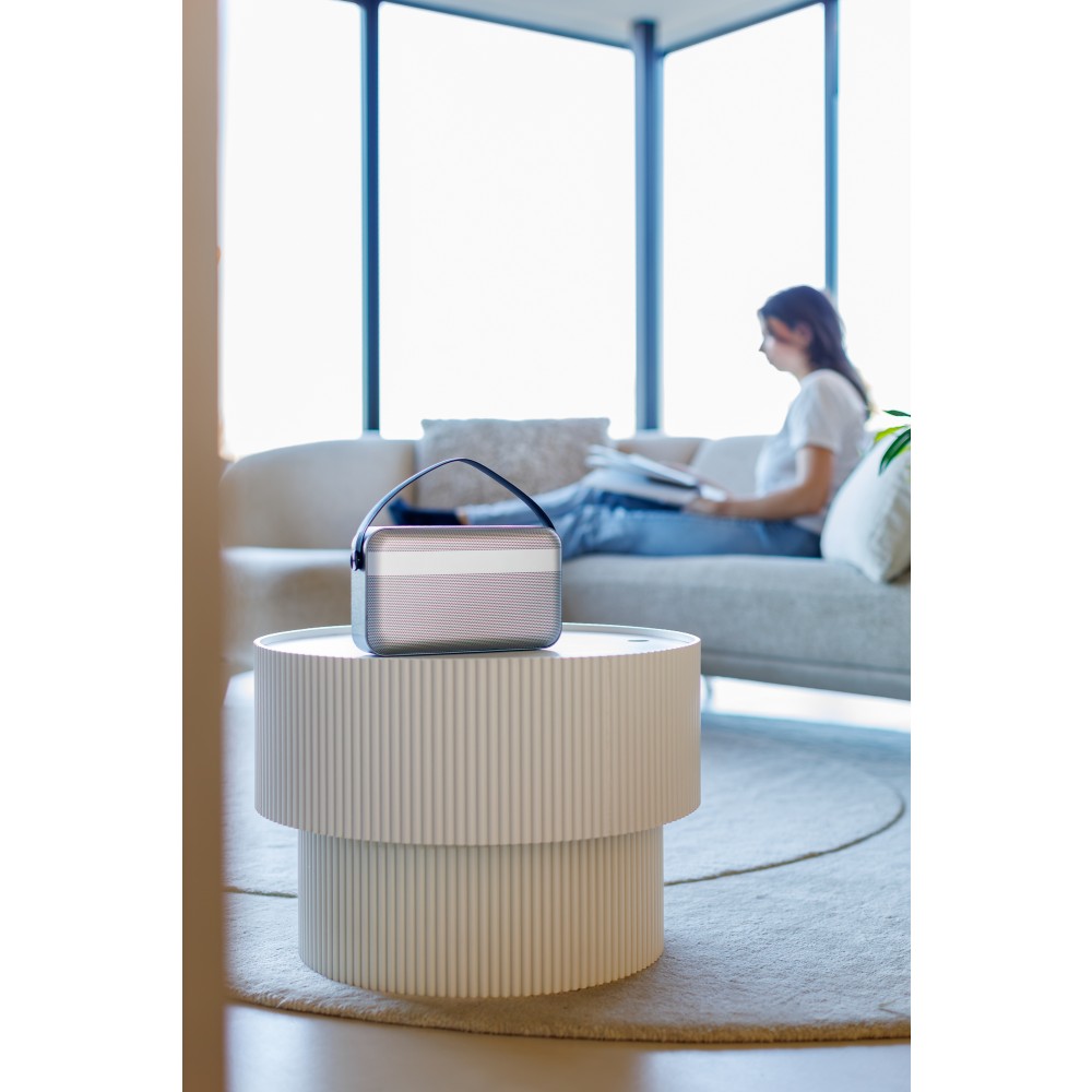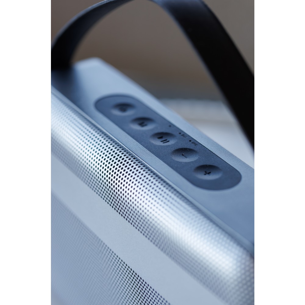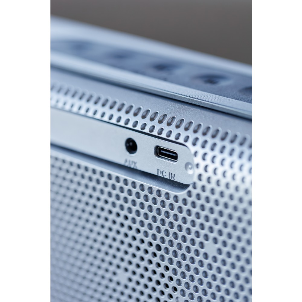 Prémium vezeték nélküli hangszóró 16 W-os kettős basszusmeghajtó rendszerrel, amely mély basszust és tiszta hangzást biztosít kompakt kivitelben. 5.2-es verziójú vezeték nélküli csatlakozási technológiával, TWS párosítással, kihangosító funkcióval, nyomógombos vezérléssel és fröccsenő víznek ellenálló házzal rendelkezik. Akár 8 órányi üzemidővel, hordozófogantyúval, valamint letisztult, minimalista stílussal kínál erőteljes hangzást beltéri és útközbeni használatra egyaránt.
