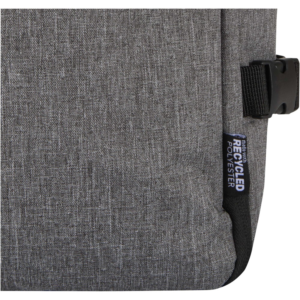 GRS tanúsítvánnyal rendelkező újrahasznosított poliészterből készült, RPET béléssel ellátott Libra hátizsák, melynek méretei megfelelnek a légitársaságok kézipoggyászra vonatkozó előírásainak. A táska egy dedikált, legfeljebb 17" méretű eszközök fogadására alkalmas laptoptartó rekesszel, valamint egy tágas főrésszel rendelkezik, amelyben rugalmas pántok és hálós elválasztók biztosítják a tartalom rendezettségét. Az elülső oldalon két nagyméretű cipzáras zseb található az alapvető kellékek gyors eléréséhez. A kényelmes viseletről és a praktikus szállításról légáteresztő hátpanel, bőröndre rögzíthető pánt, állítható vállpántok, mellkaspánt, valamint felső és oldalsó hordozófogantyúk gondoskodnak. Letisztult megjelenése és funkcionális kialakítása miatt kiváló választás üzleti utakhoz vagy irodán kívüli munkavégzéshez, miközben alapanyaga az öko-tudatosságot tükrözi.