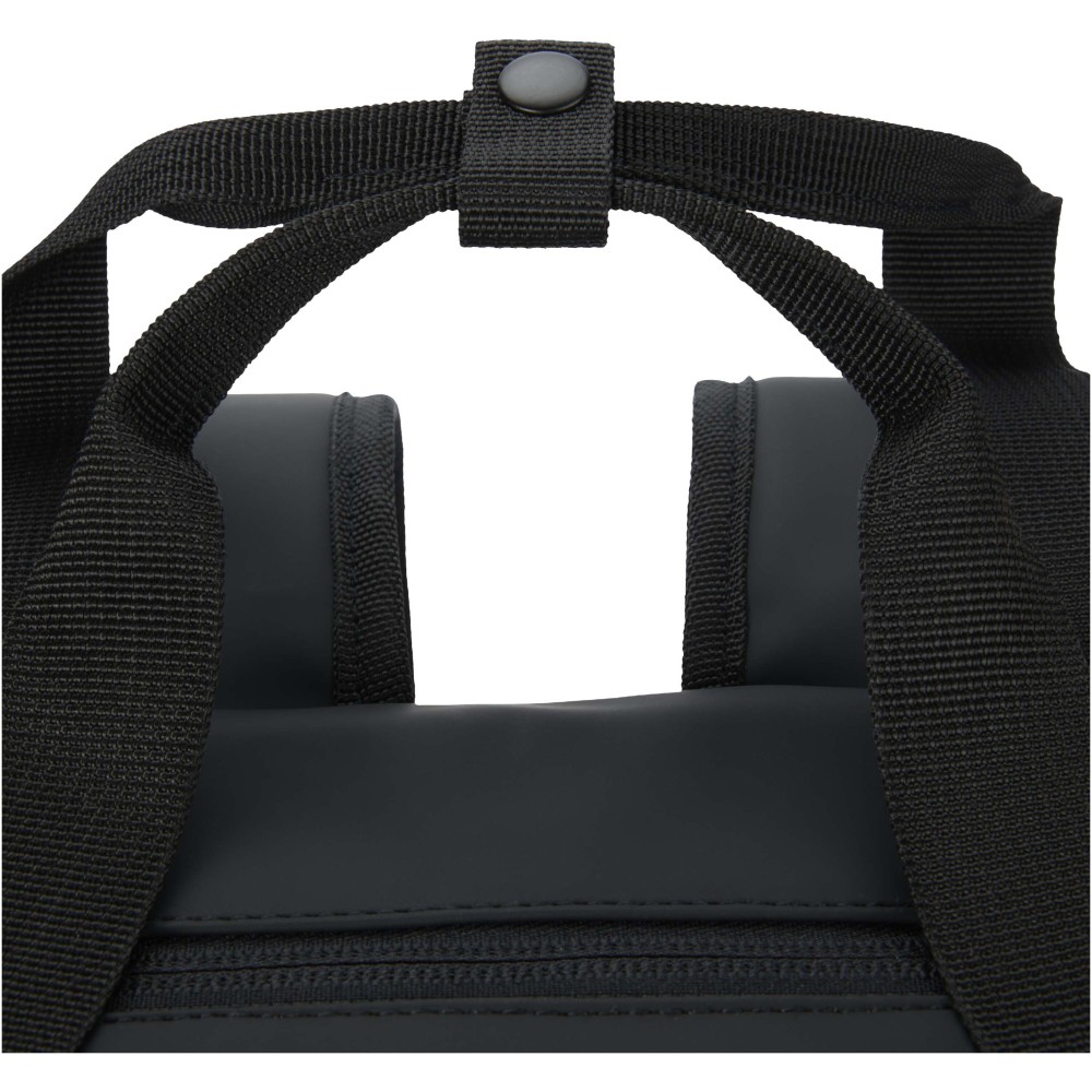Ez a 18 literes hűtőhátizsák GRS tanúsítvánnyal rendelkező, újrahasznosított PU-műbőrből készült, színben harmonizáló RPET béléssel, így ideális választás szabadtéri programokhoz. A tágas főrekesz kiváló minőségű PEVA béléssel és vastag PE habszigeteléssel biztosítja az ételek és italok hűtését, míg a belső rugalmas pántok stabilan rögzítik a borospalackokat. A termék egy nagy méretű, párnázott elülső cipzáras zsebbel rendelkezik az extra védelem érdekében, az oldalsó nyitott zseb pedig gyors hozzáférést biztosít a kulacsokhoz. A kényelmes viseletről a légáteresztő hálós hátrész, valamint az állítható és párnázott vállpántok gondoskodnak, így praktikus kiegészítő piknikezéshez, strandoláshoz vagy kempingezéshez.