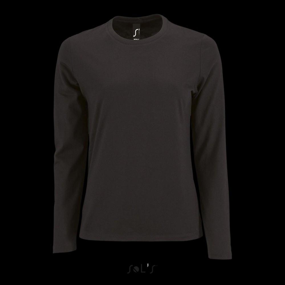 Sols Imperial hosszúujjú női pamut póló, Deep Black