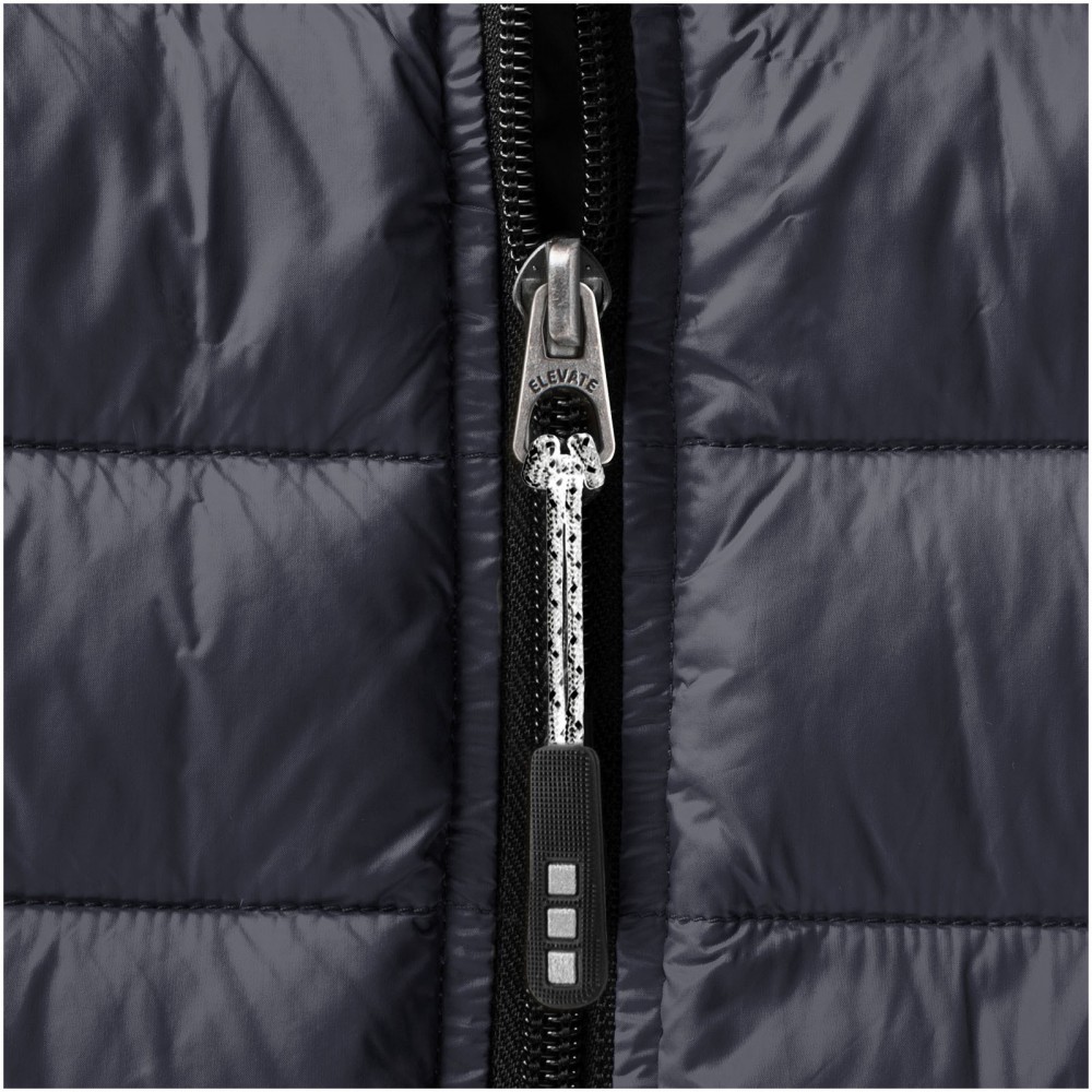 Normál szabásvonal. Pehelybiztos anyag. Cipzáros mell- és oldalzsebek. Szél elleni állvédő betét a nyaknál. Gumis szegély az aljon és a karöltőben. Vízlepergető, lélegző és szélálló. Hátul fényvisszaverő logónyomat . Könnyen megfogható cipzárhúzókák . A RedDot Design Díj nyertes Scotia dzsekivel megegyező minőség. 100% nylon, szőtt anyag, dupla vízlepergető bevonat, 20D. 80% pehely és 20% toll töltet.