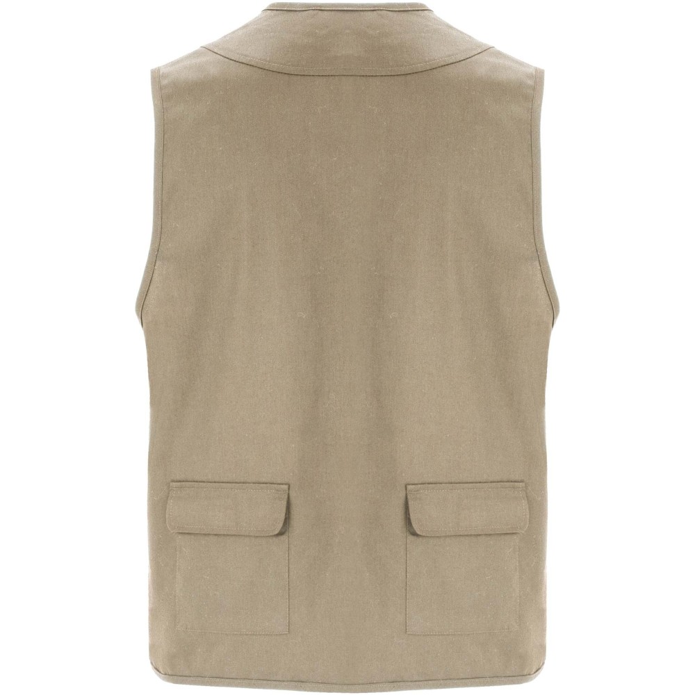 V-nyakú, többfunkciós zsebekkel ellátott munkamellény. Elülső cipzárja húzókával felszerelt. A mellrészen három zseb található, amelyek hajtókával és tépőzárral záródnak, a felső zseb pedig multifunkciós gyűrűvel kiegészített. Két cipzáras és húzókával ellátott oldalsó zsebbel rendelkezik, amelyeken két további, hajtókás és tépőzáras zseb helyezkedik el. A hátoldalon két hajtókás, tépőzáras zseb található. A nyakkivágás, a karkivágások és az derékrész díszítőszegéllyel van ellátva.