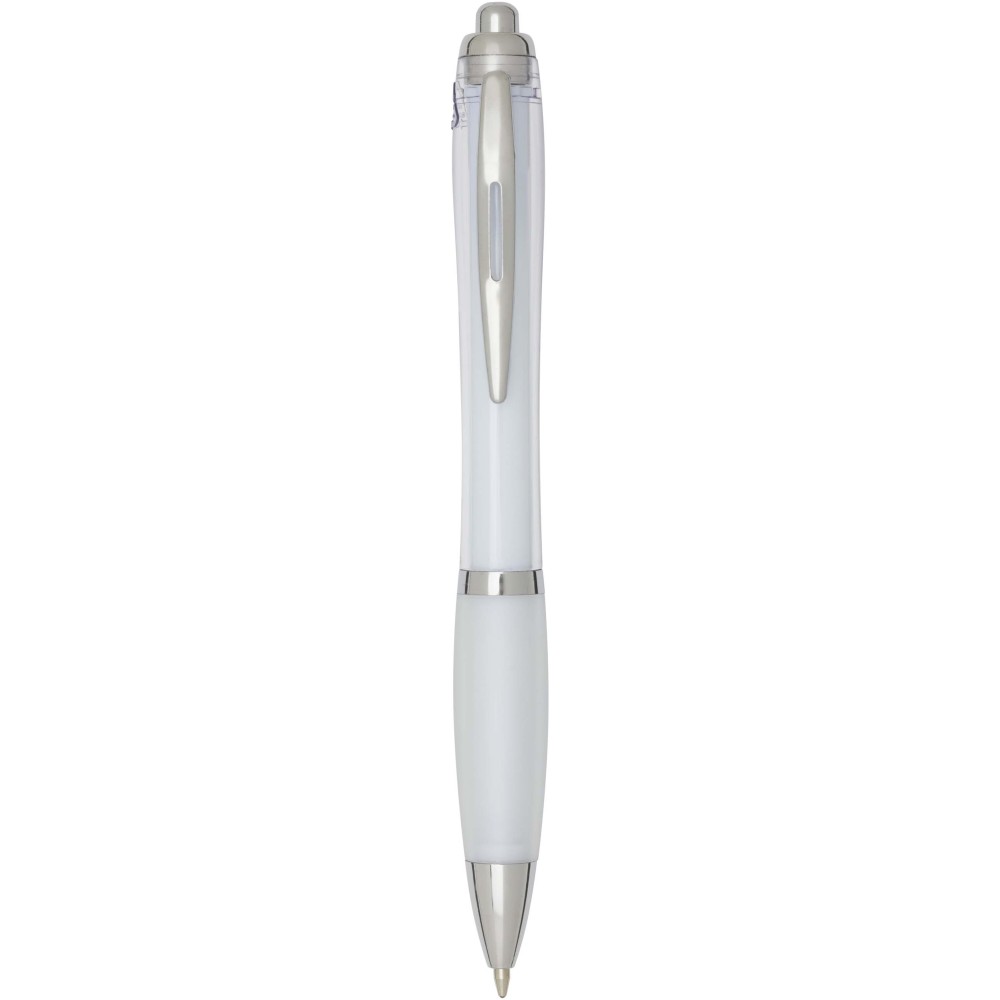 A Nash újrahasznosított műanyagból készült nyomógombos golyóstoll stílusos, ívelt kialakítású, áttetsző színes tolltesttel, ezüst díszítéssel és a tolltest színével megegyező, kényelmes írást biztosító puha fogórésszel rendelkezik. Az RCS tanúsítvánnyal rendelkező újrahasznosított ABS műanyagból készült termék segít csökkenteni a szűz alapanyagok felhasználását, miközben megőrzi tartósságát. A toll hátoldalán található rABS logó jelzi az újrahasznosított anyagösszetételt. Tinta színe: kék. Tollhegy mérete: 1.0 mm. Íráshossz: 1000 méter.