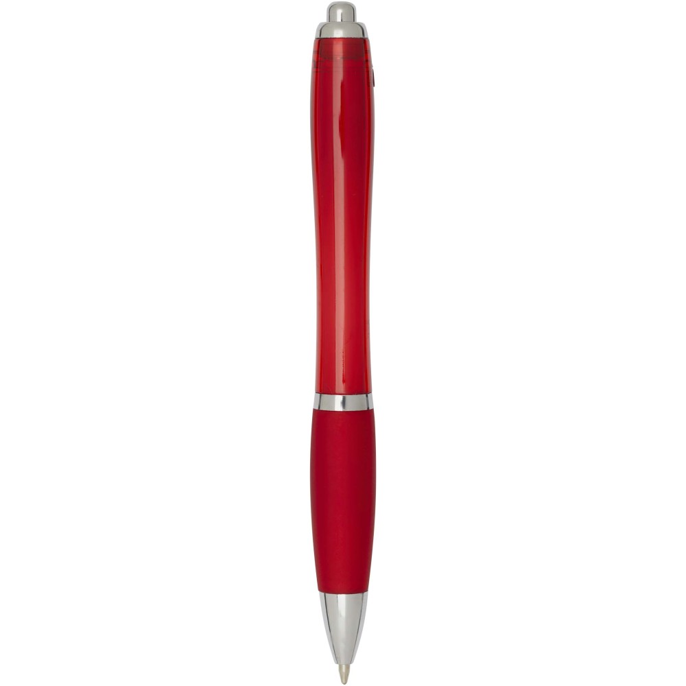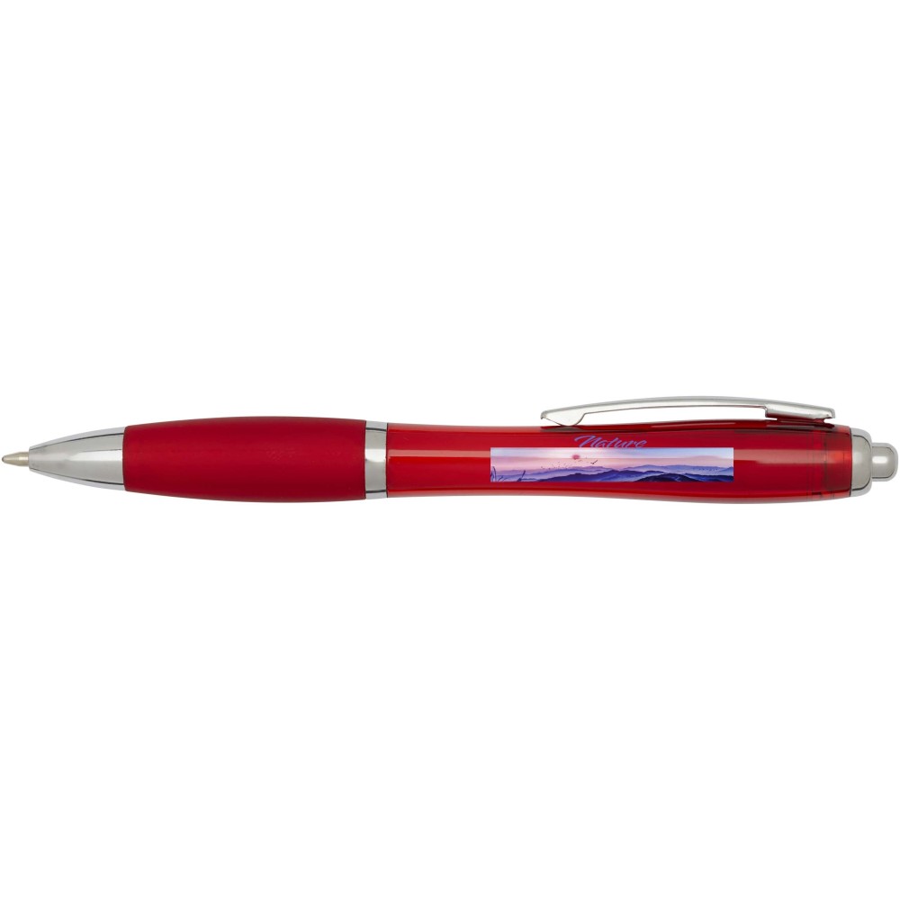 A Nash újrahasznosított műanyagból készült nyomógombos golyóstoll stílusos, ívelt kialakítású, áttetsző színes tolltesttel, ezüst díszítéssel és a tolltest színével megegyező, kényelmes írást biztosító puha fogórésszel rendelkezik. Az RCS tanúsítvánnyal rendelkező újrahasznosított ABS műanyagból készült termék segít csökkenteni a szűz alapanyagok felhasználását, miközben megőrzi tartósságát. A toll hátoldalán található rABS logó jelzi az újrahasznosított anyagösszetételt. Tinta színe: kék. Tollhegy mérete: 1.0 mm. Íráshossz: 1000 méter.