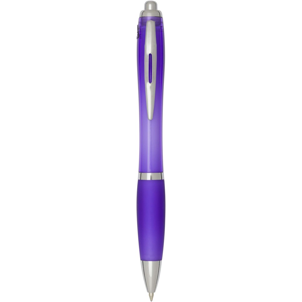 A Nash újrahasznosított műanyagból készült nyomógombos golyóstoll stílusos, ívelt kialakítású, áttetsző színes tolltesttel, ezüst díszítéssel és a tolltest színével megegyező, kényelmes írást biztosító puha fogórésszel rendelkezik. Az RCS tanúsítvánnyal rendelkező újrahasznosított ABS műanyagból készült termék segít csökkenteni a szűz alapanyagok felhasználását, miközben megőrzi tartósságát. A toll hátoldalán található rABS logó jelzi az újrahasznosított anyagösszetételt. Tinta színe: fekete. Tollhegy mérete: 1.0 mm. Íráshossz: 1000 méter.