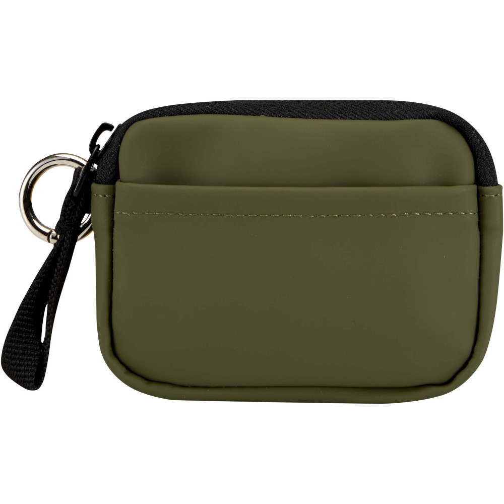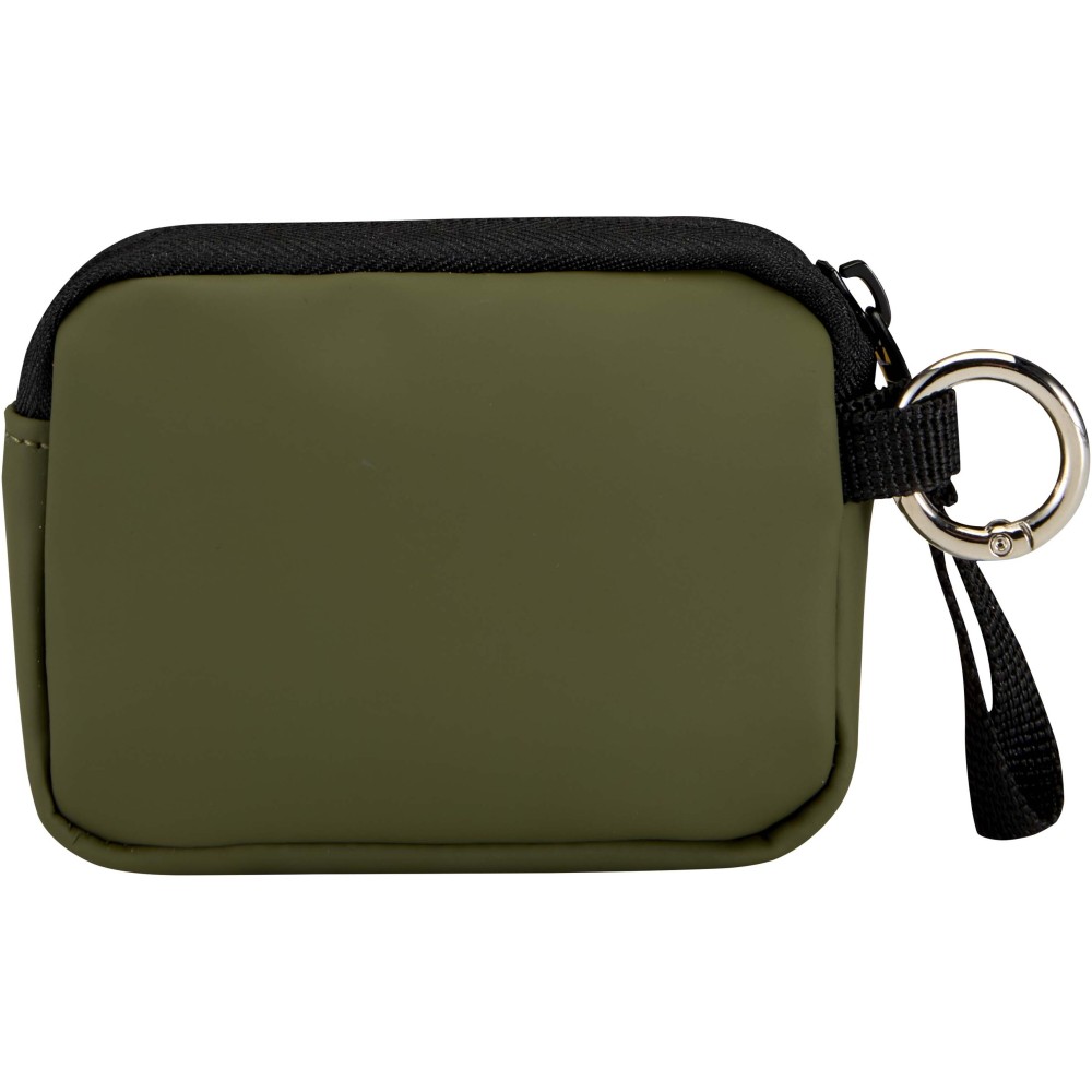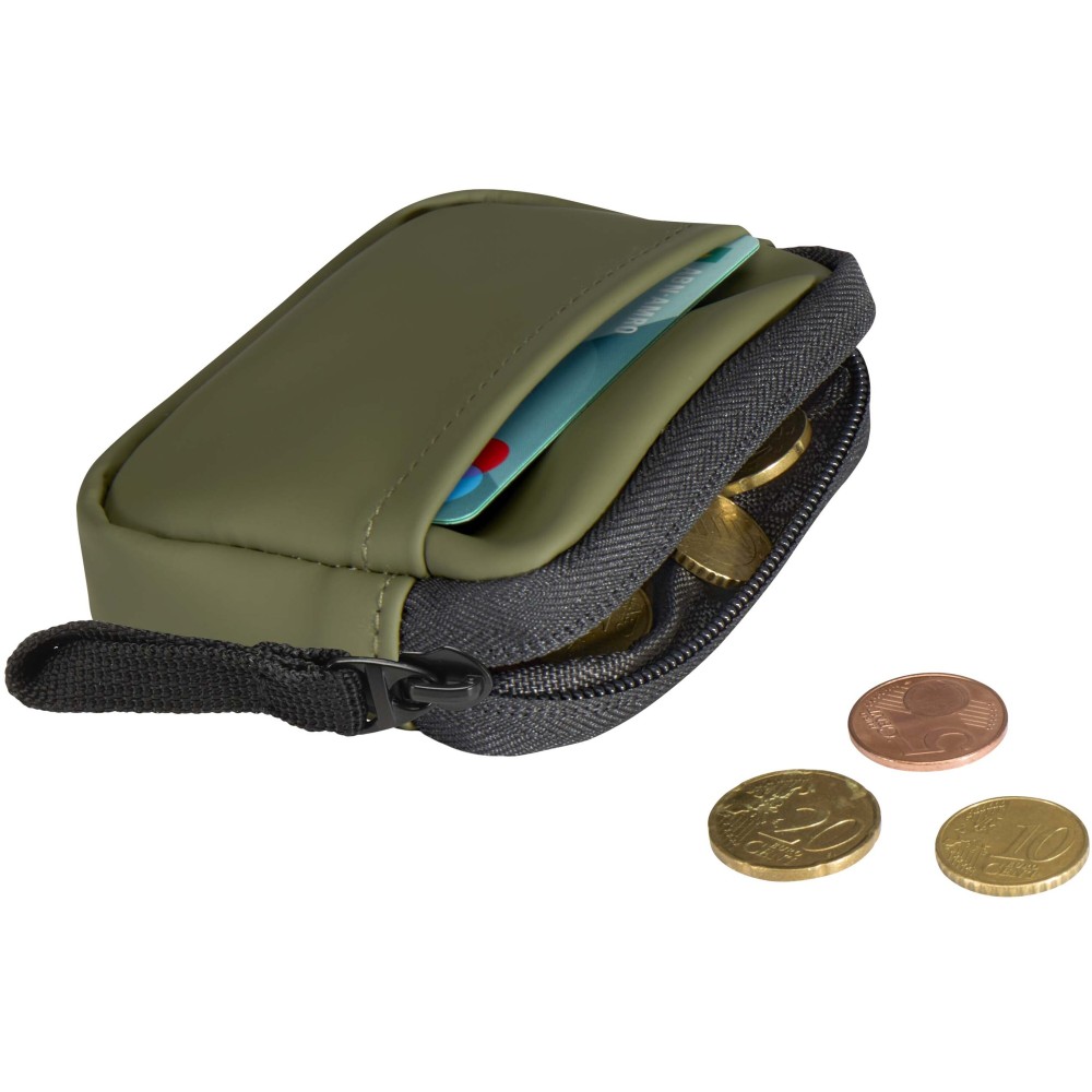 Minőségi újrahasznosított PU bőrből készült, felcsatolható pénztárca, amely ötvözi a letisztult stílust a mindennapi praktikummal. A biztonságos cipzáras záródással és belső kártyatartó rekesszel ellátott kiegészítő gondoskodik az értéktárgyak rendszerezett és könnyen hozzáférhető tárolásáról. Egyszerűen rögzíthető táskához, övbújtatóhoz vagy kulcscsomóhoz.
