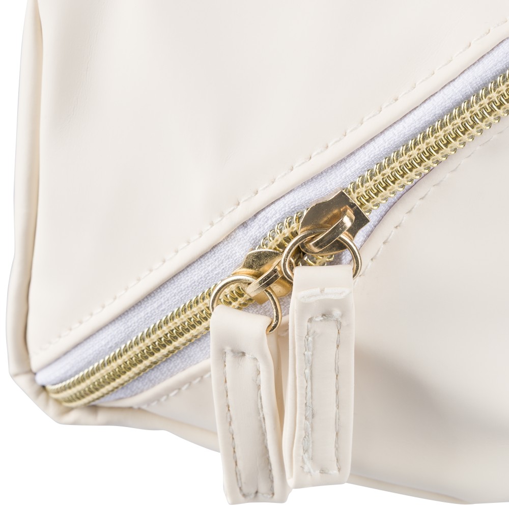 Újrahasznosított PU anyagból készült neszesszer középen elhelyezett cipzárral a széles nyithatóság érdekében. Rövid fogantyúval, tágas belső térrel és négy rekesszel, beleértve egy belső cipzáras zsebet. 210D újrahasznosított béléssel készült, belsejében egy újrahasznosított alapanyagra utaló címkével.
