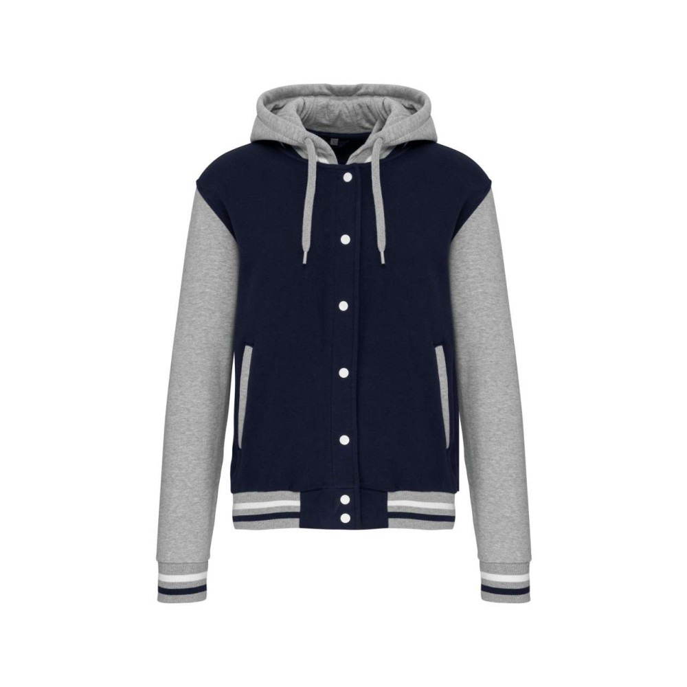 Kariban Uniszex kapucnis pulóver, Navy/Oxford Grey/Whi