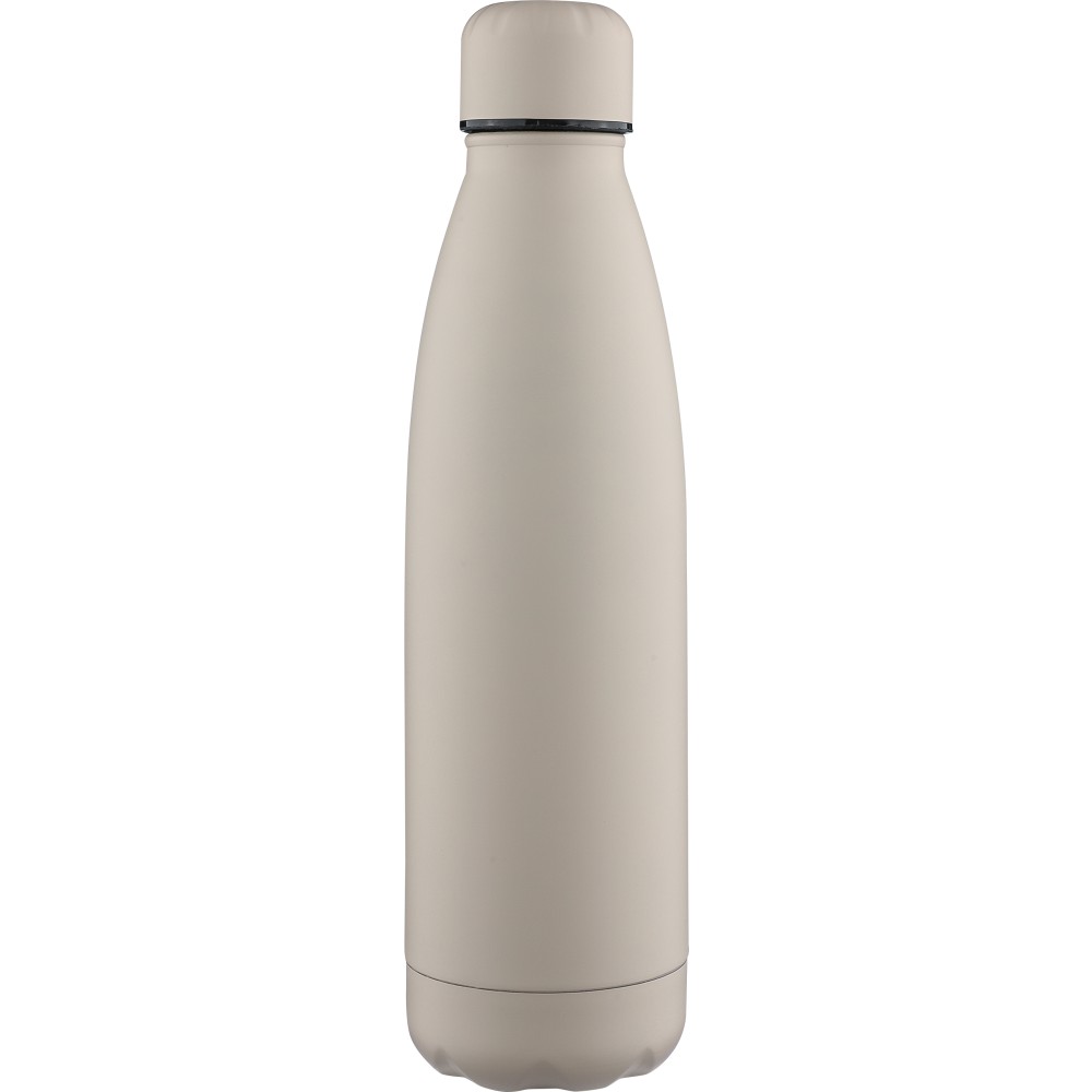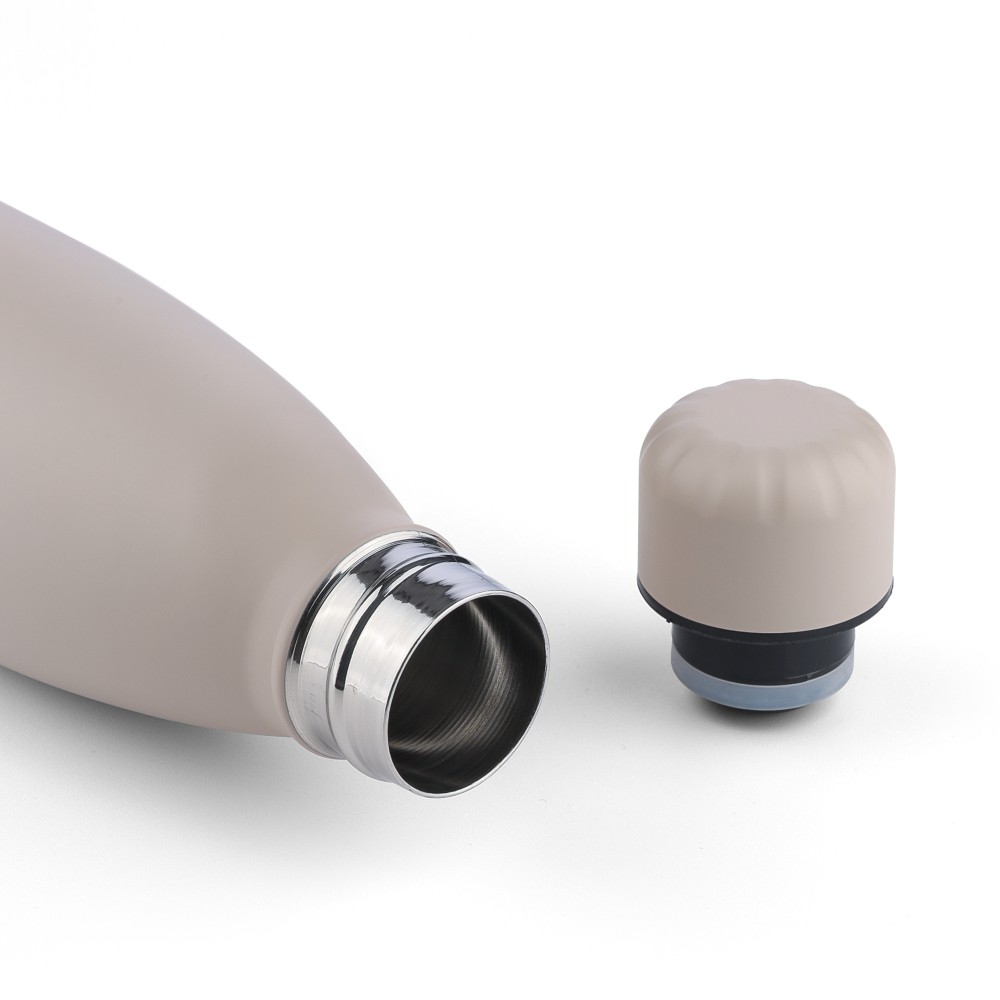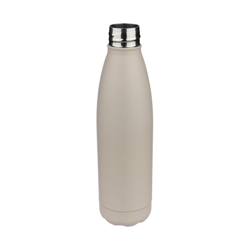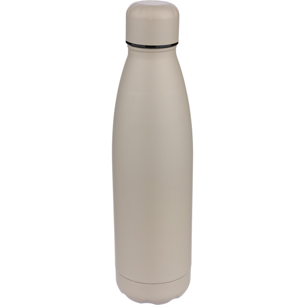 Újrahasznosított rozsdamentes acél ivópalack 500 ml-es űrtartalommal. Duplafalú szigetelés, amely akár 12 órán át melegen vagy hidegen tartja az italokat. A 304-es rozsdamentes acél belső kiváló tartósságot, rozsdaállóságot és biztonságos élelmiszer-érintkezést garantál. Selymes matt színű felülettel. A csavaros fedél és az aljzat színben egyezik a tiszta, egységes megjelenés érdekében. A palack elülső részén gravírozott újrahasznosított logó található. Egyenként, barna kartondobozba csomagolva.