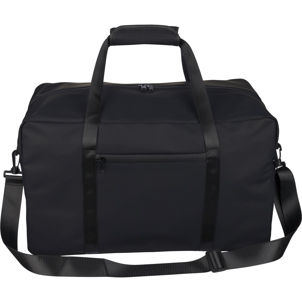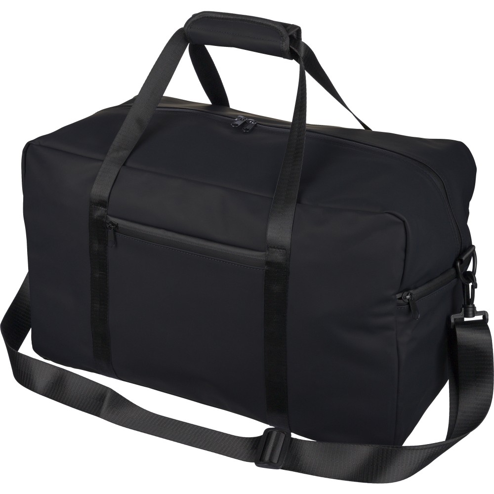 Újrahasznosított PU anyagból készült sporttáska 35 literes űrtartalommal, 210D újrahasznosított poliészter béléssel. 108 cm hosszúságú és 2,5 cm szélességű fogantyúval rendelkezik tépőzáras rögzítéssel, valamint 130 cm hosszúságú és 3,9 cm szélességű állítható vállpánttal. Elülső cipzáras zsebbel és nagy fő rekesszel készül. A belső címkén újrahasznosított alapanyagra utaló logó található.