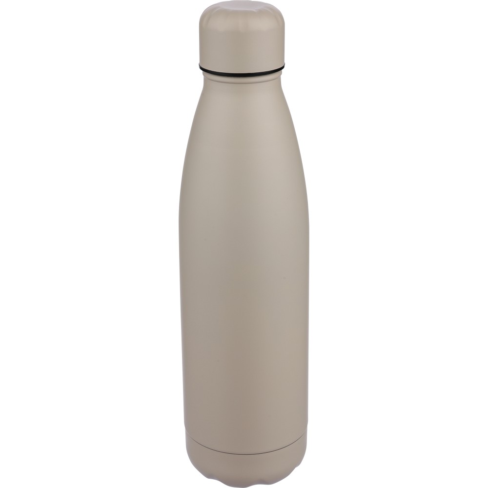 Újrahasznosított rozsdamentes acél, egyfalú ivópalack 700 ml-es űrtartalommal. Hideg italok tárolására alkalmas, és 3-4 órán át hűvösen tartja azokat. A 304-es rozsdamentes acél belső kiváló tartósságot, rozsdaállóságot és biztonságos élelmiszer-érintkezést garantál. Matt színű felülettel, valamint színben illeszkedő csavaros fedéllel és aljjal. Az elülső oldalon gravírozott újrahasznosított logó található. Egyenként barna kartondobozba csomagolva.